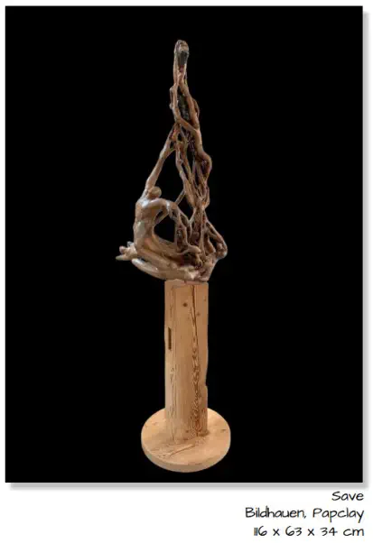 mit diesem natürlichen Material schafft sie Skulpturen von erstaunlicher Ausdruckskraft und