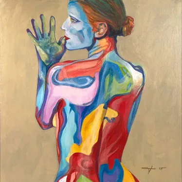 alte Bodypainting-Bilder auf Dias wiederentdeckt und diese auf Leinwänden interpretiert. Am