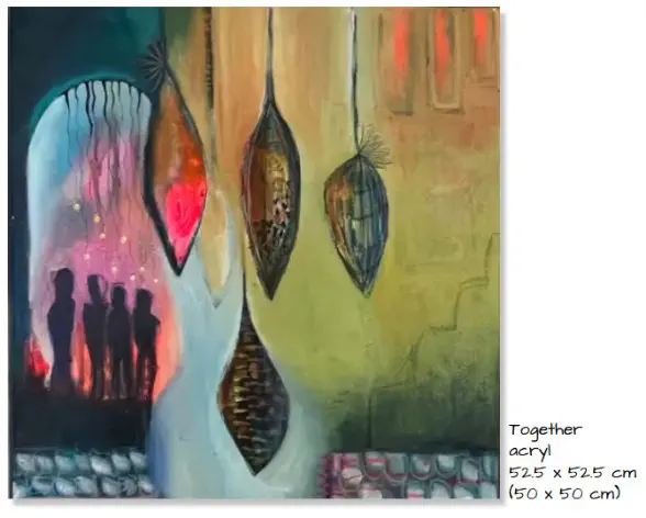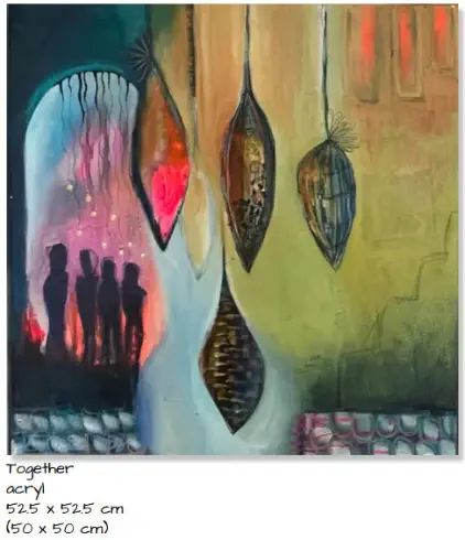 Meine intuitiven Bilder entstehen, indem ich die Farbe mit verschiedenen Pinseln, mit meinen Fingern,