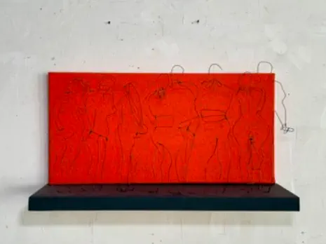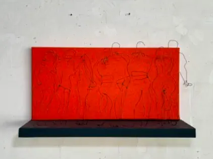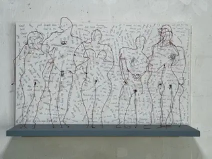Draht, Holz, Acryl, Pen