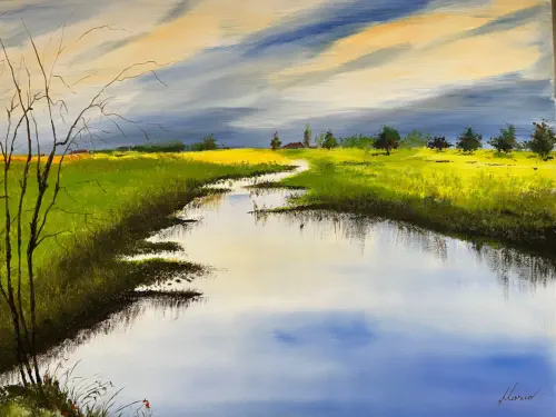 seinen eigenen, ausdrucksstarken Stil finden. Die ruhige, beeindruckende Landschaft regte
