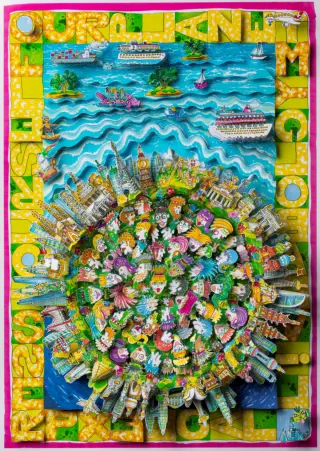 Meine Reliefwerke sind vielschichtig, bunt und erzählen oft eine Geschichte. Bildteile