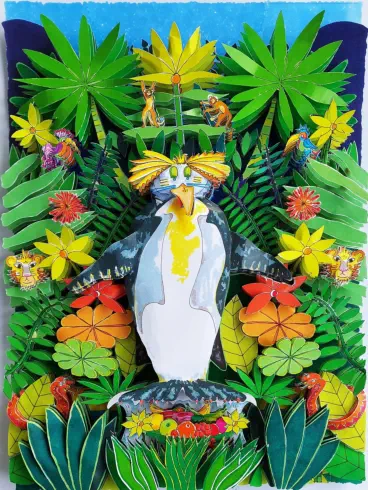 werden ausgeschnitten und zu einem 4 bis 5-lagigen Relief aufgeschichtet. Durch das
