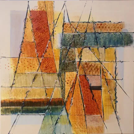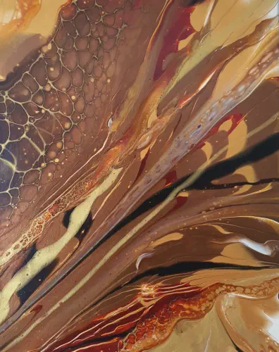 Fliesstechniken, lässt sich intuitiv von Farben, Texturen und dem Moment leiten.