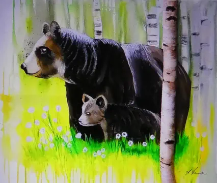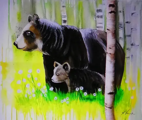 Acrylbildern , (1 m x 1 m). Als Naturfreund und Ornithologe sind Tiere und Vögel meine Malmotive