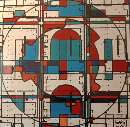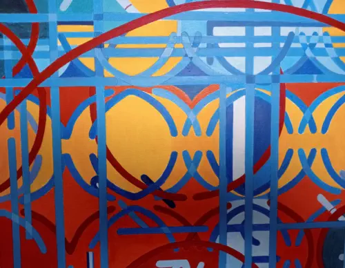geometrische 3d Abstraktion, eine Synthese von industriellen Computerprogrammen und Malerei.
