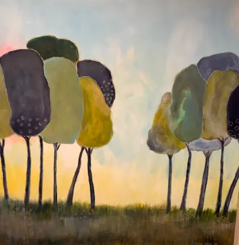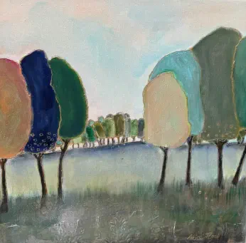Sie verwendet neben Acrylfarben auch eher unkonventionelle Materialien, zum Beispiel