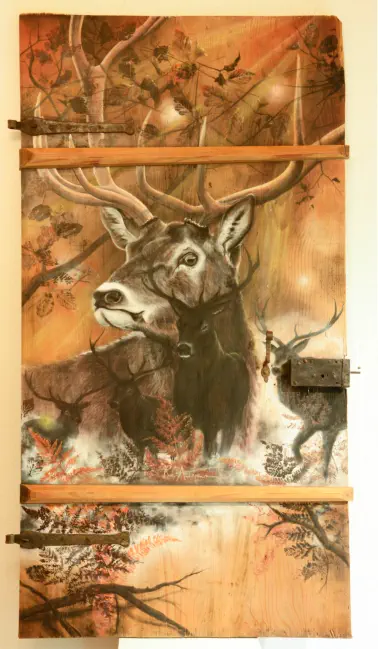 Pastell und Acryl auf Altholztür