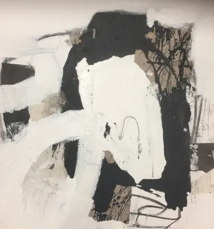 Strukturmassen, Stoffen, Papieren und zahlreichen weiteren Materialien wie Holzbeize, Asche,