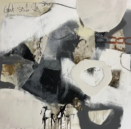 Techniken, hauptsächlich in Acryl-Mischtechnik. Dabei arbeite ich spielerisch mit Sand,