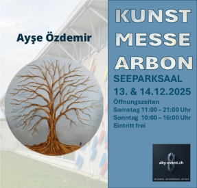Am 13. & 14. Dezember 2025 kehrt die Kunstmesse Arbon zurück und präsentiert sich als inspirierender Treffpunkt für zeitgenössische Kunst und kreativen Austausch. Tauchen Sie ein in eine vielfältige Ausstellung, die Malerei, Skulptur, Fotografie und Mixed Media von nationalen und internationalen Künstlerinnen und Künstlern zeigt.Neben den beeindruckenden Exponaten bietet die Messe ein attraktives Programm aus Musik, Live-Performances und interaktiven Formaten. Freuen Sie sich auf spannende Gespräche, Künstlergespräche und die Möglichkeit zu persönlichen Begegnungen, bei denen Sie neue Perspektiven kennenlernen und in die kreative Welt eintauchen können.Entdecken Sie Kunst in all ihren Facetten – wir freuen uns darauf, Sie bei der Kunstmesse Arbon begrüßen zu dürfen Zusätzlich erwartet Sie am Samstag ein sehr attraktives Rahmenprogramm. Weitere Informationen und das vollständige Programm finden Sie hier: Programm